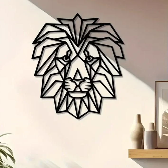Deze leeuw, de koning van de dieren, is een echte blikvanger aan je muur. Het geometrische ontwerp geeft meteen karakter aan je woonkamer, maar past ook goed in de keuken, hal of op kantoor. Met zijn stoere uitstraling maakt hij elke ruimte persoonlijk en bijzonder.