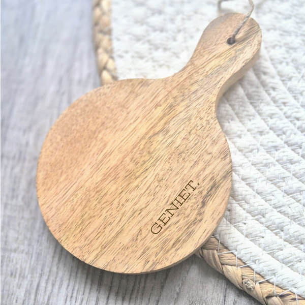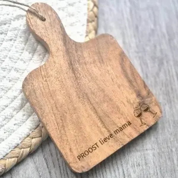 Een klein hapje, een blokje kaas of gewoon een stijlvolle onderzetter? Deze gepersonaliseerde onderzetter is precies wat je nodig hebt! Gemaakt van stevig mangohout en verkrijgbaar in een ronde of vierkante variant. Compact, maar met gravure een echte blikvanger op tafel!