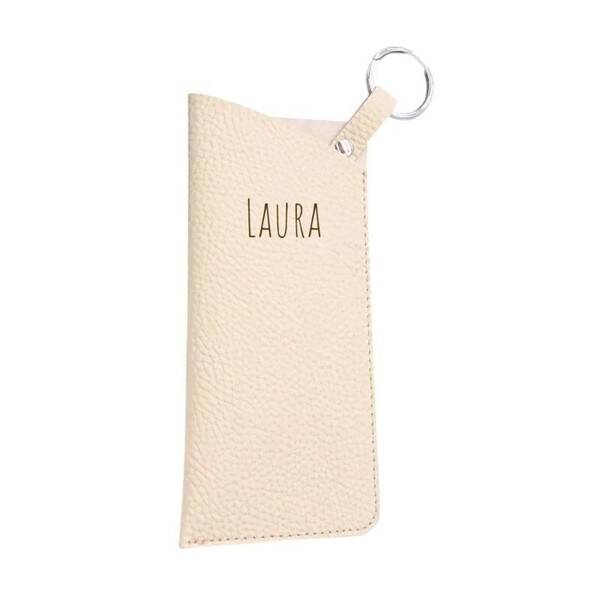 Deze brillenetui met naam is de ideale mix tussen stijlvol en praktisch. Geen gezoek meer in je tas, dankzij de handige gesp klik je dit hoesje gewoon aan je tas vast.