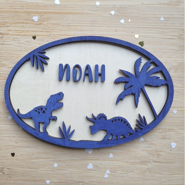 Dit naambordje van hout geeft de kinderkamer meteen een persoonlijke look. Dino's blijven voor veel kinderen onweerstaanbaar en met dit bordje voeg je een stoer accent toe waar elke dinofan blij van wordt!