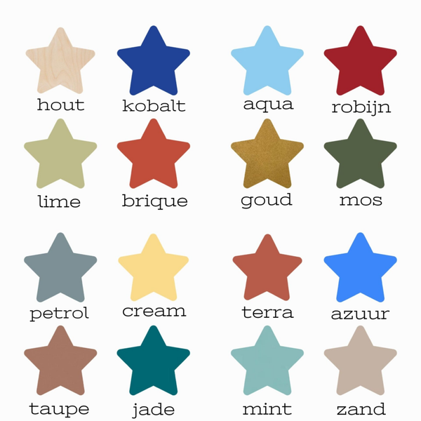 Het naambord bestaat uit 2 lagen hout voor een mooi 3D-effect. Met verschillende kleurcombinaties maak je het naambordje helemaal naar wens en passend bij de kinderkamer. Voor een mooi geheel krijgt de naam altijd dezelfde kleur als de bovenste laag.