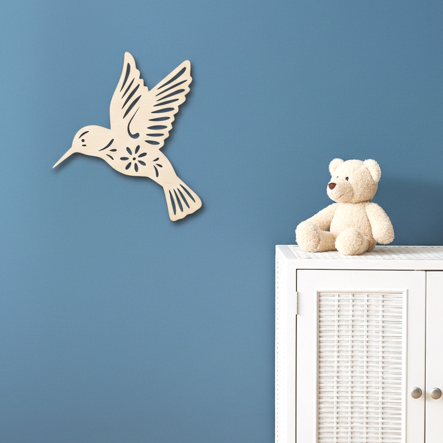 Deze set van drie houten kolibries is perfect als wanddecoratie voor de baby- of kinderkamer. Ze zorgen meteen voor die knusse, gezellige sfeer. Elk vogeltje heeft een verfijnd bloemendetail, wat ze heel sierlijk maakt.