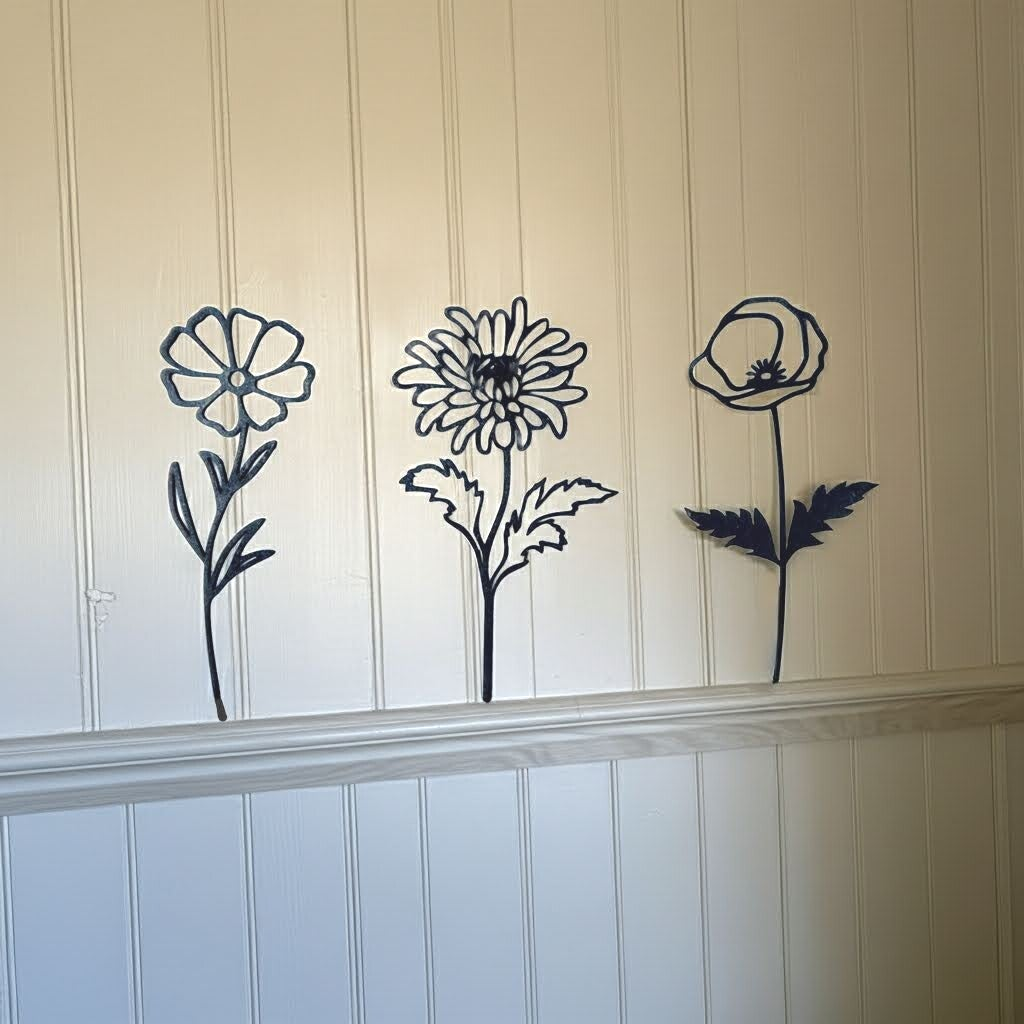Ook heel leuk: bevestig wat bloemen aan de muur als wanddecoratie. Bijvoorbeeld in een rijtje naast elkaar boven een plank, lambricering of kastje.