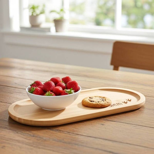 Het plankje is ideaal voor kleine hapjes na school, bij een tussendoortje of als ontbijtbord. Ook leuk: serveer bijvoorbeeld chocolademelk met marshmallows voor een extra gezellig moment. Dankzij de opstaande rand blijven kruimels daar waar ze horen! ;)
