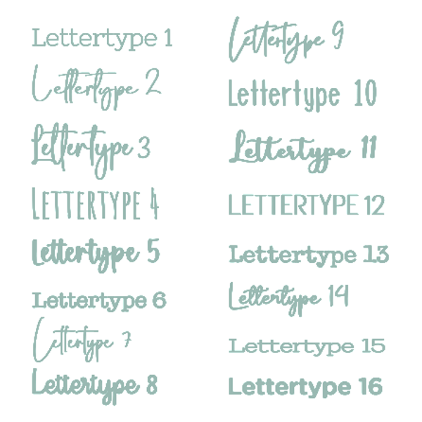• Lettertype voor gravure: kies zelf welk lettertype je mooi vindt voor de gegraveerde tekst.