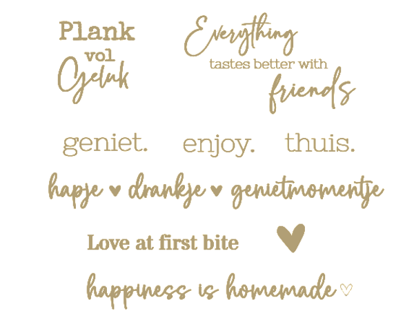Kies voor een standaard tekst die bij het moment past, of laat je eigen boodschap graveren. Van een grappige quote tot een persoonlijk bedankje, alles is mogelijk! En ook de plaatsing van de gravure op de plank bepaal jij helemaal zelf! Wil je de tekst onderaan, centraal, of juist speels schuin? In de afbeeldingen zie je verschillende voorbeelden van hoe je tekst op de plank kan komen te staan, zodat jij precies weet wat je kunt verwachten.