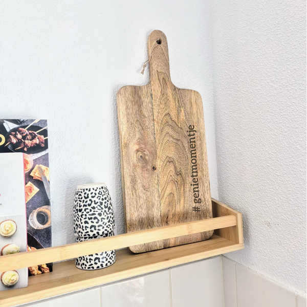 Tijd voor een borrel! En wat is er nou leuker dan al dat lekkers serveren op een unieke, gepersonaliseerde borrelplank Deze serveerplank van mangohout is niet alleen superhandig, maar ook een echte blikvanger op tafel.