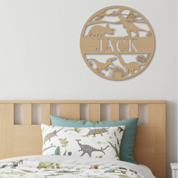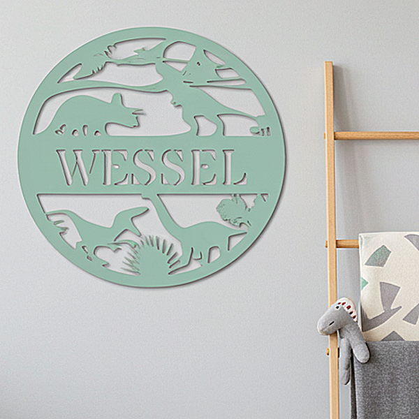 Een dino die je kamer bewaakt? Ja hoor! Dit houten naambord met uitgesneden naam ien dino's een stoere eyecatcher voor de kinderkamer. Gemaakt van hout, dus lekker stevig en tijdloos. Leuk aan de muur, op een plank of als naambord op de deur.